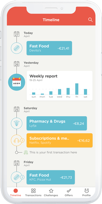 Show users weekly and monthly reports, notify them about deposits, unusual transactions amount, budget, and funds available. Notifications for merchant & transaction are also available.